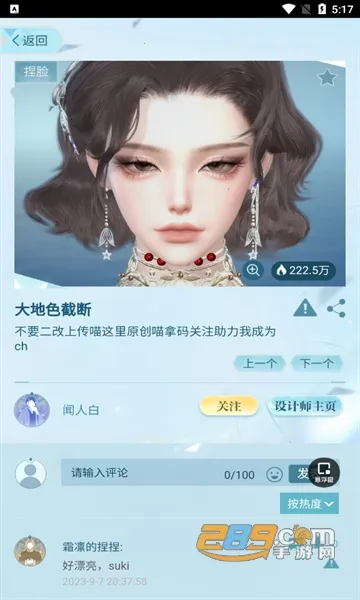 1、在逆水寒装扮站App手机版中看到心仪的作品,可以查阅作品名称;