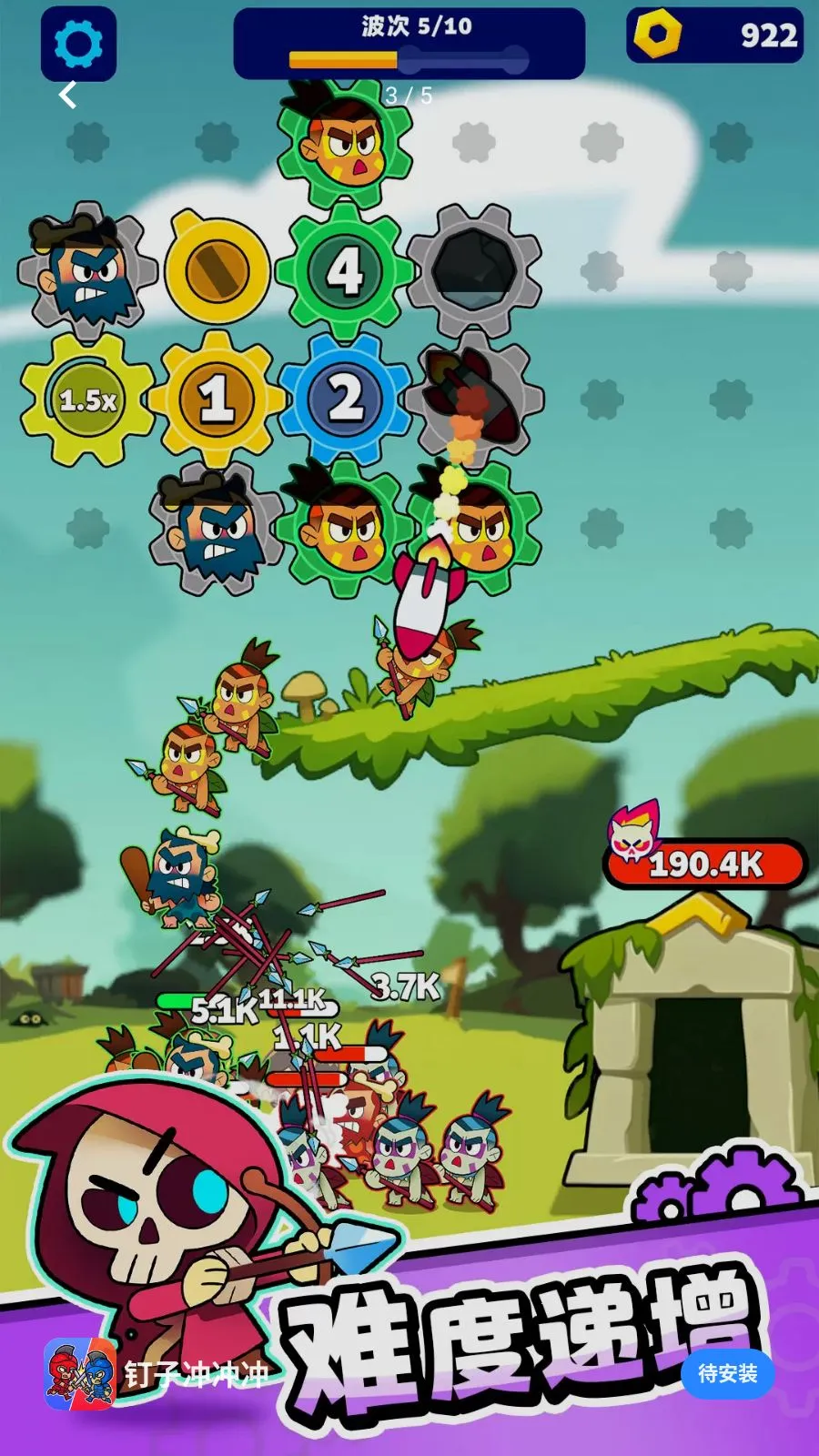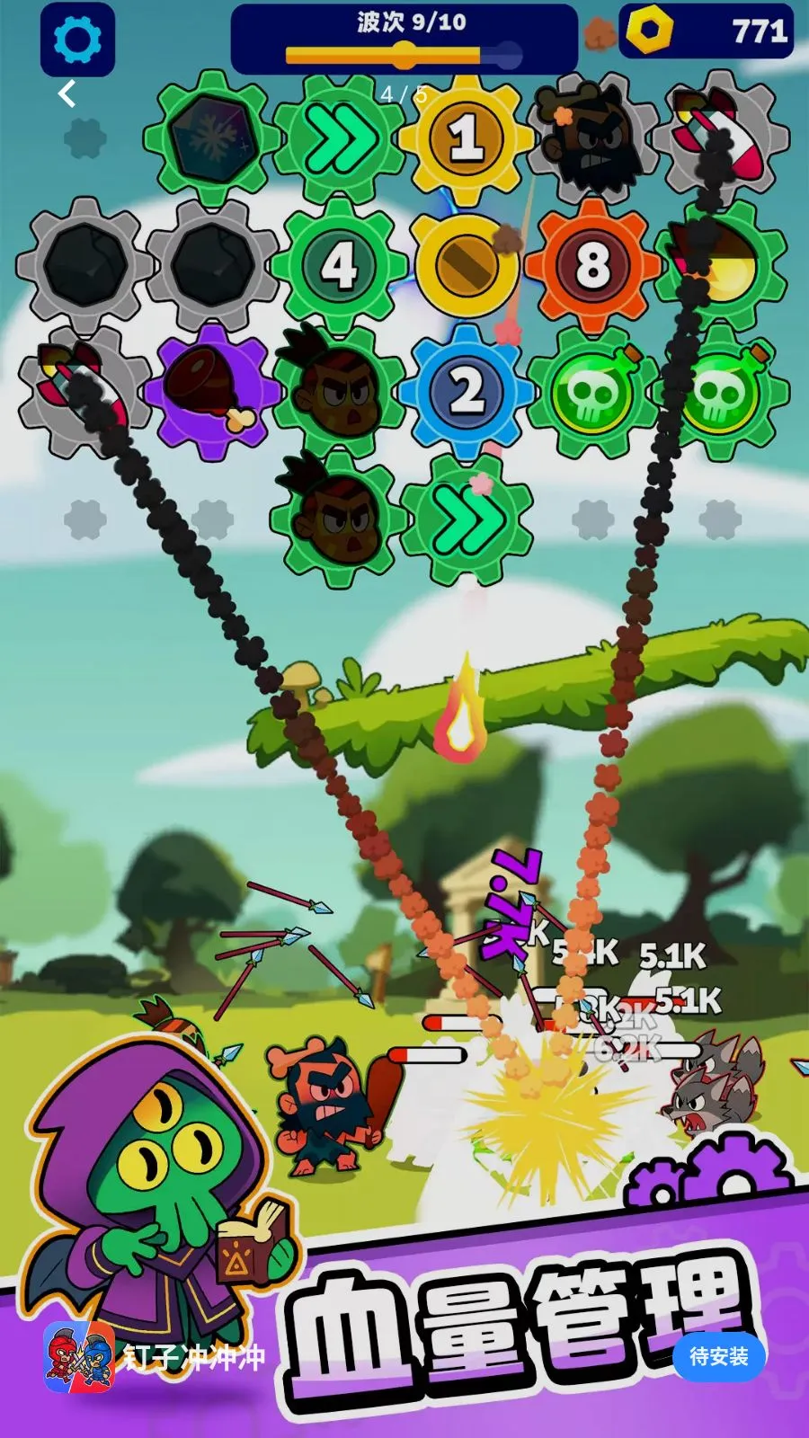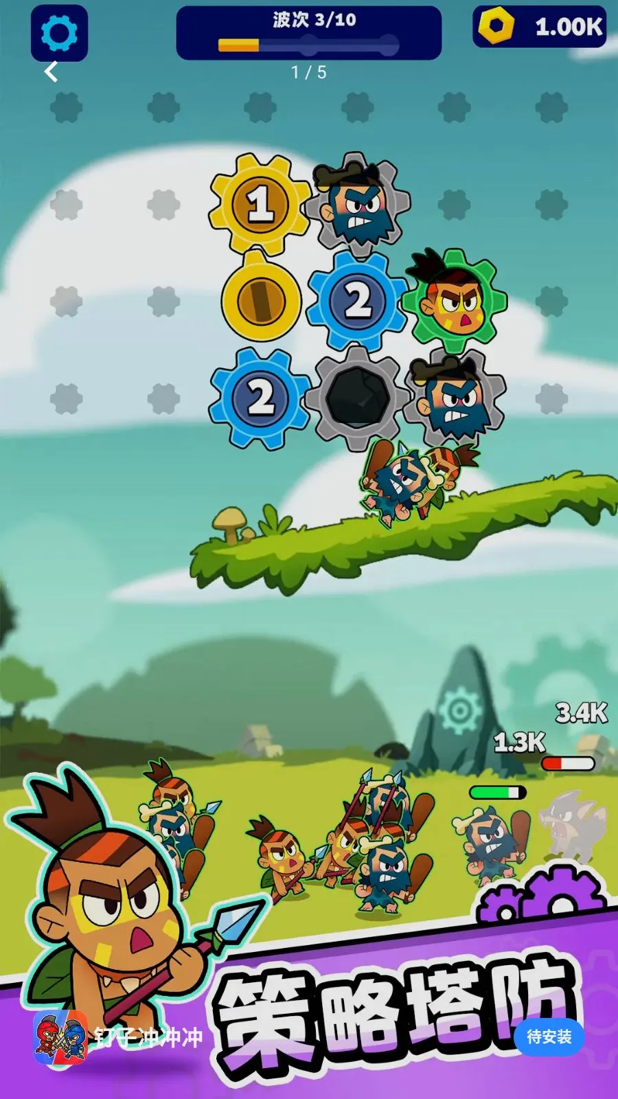 随着关卡推进,战场从清新平原升级,你要不断优化阵容、调整站位,运用策略守住部落防线,破解齿轮之谜。