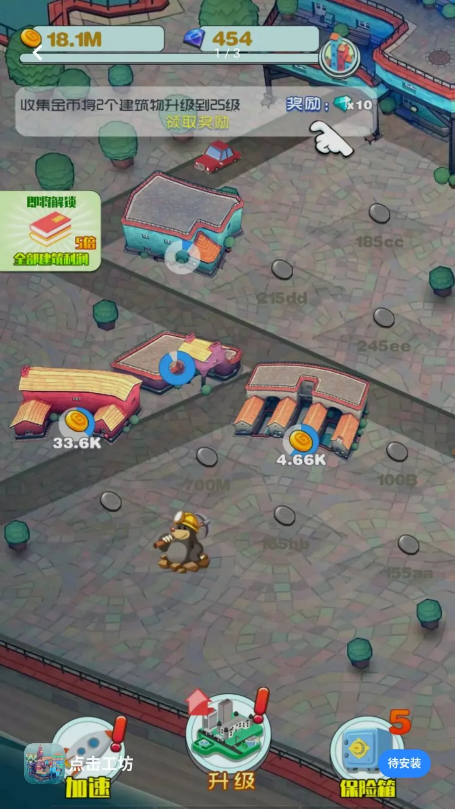 点击工坊 2026 最新版本是模拟经营游戏,玩家当市长规划城市。简单易上手,靠点击畅玩。有精美卡通风建筑,轻松音效。玩法包括升级建筑获资金、开保险库赚外快、处理突发事件提知名度赢奖励,还能解锁特殊建筑。