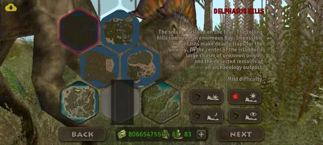 可按喜好和技能在区域填充恐龙。能装备伪装、掩蔽气味或雷达。