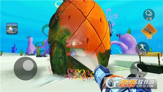 p1:在“清洁菠萝屋挑战2”中,你将扮演清洁工,用手枪清除菠萝屋内的垃圾和污垢。