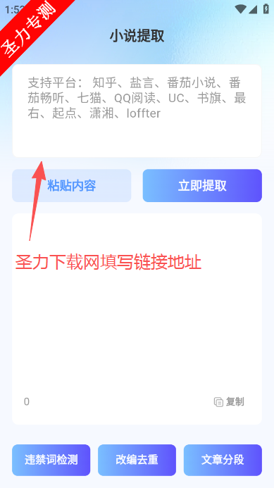 2、跳转页面输入想要提取的小说链接。