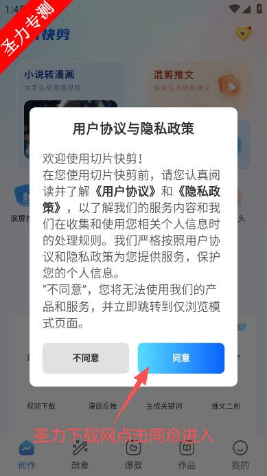 2、仔细阅读屏幕上的隐私政策,点击同意按钮进入。