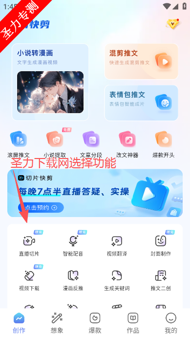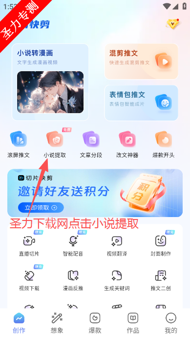 小说转漫画:输入文字即可生成漫画视频,自动排版角色对话,省去手动配图时间。