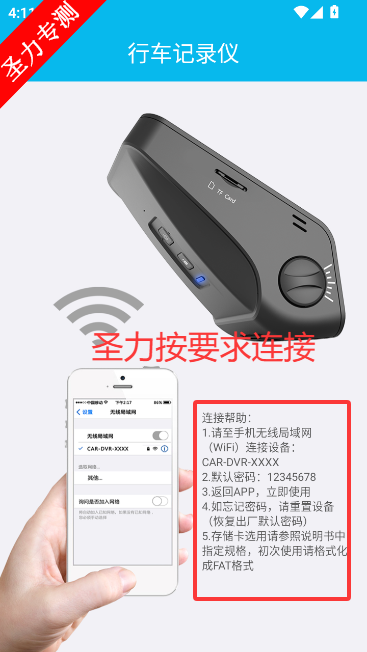 蓝牙/WiFi配对:手机蓝牙设为“所有人可见”,确保记录仪WiFi已开启(默认密码如12345678/123456),手机需允许APP访问WLAN权限;