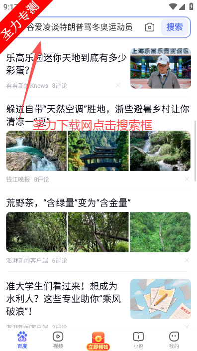 3、在软件首页便可看到搜索功能,点击上方搜索框。