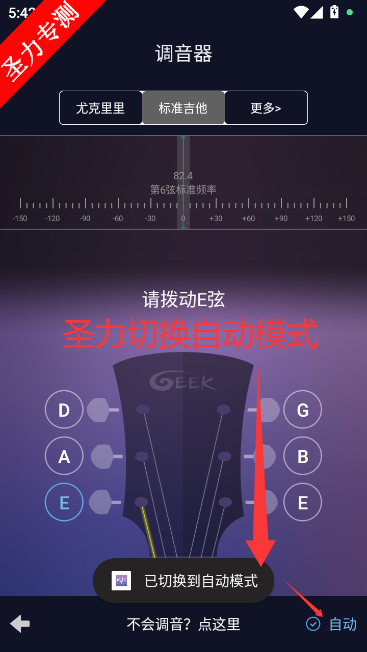 多模式支持:提供标准调音、特殊调弦(如降半音、DADGAD)及自定义方案,满足不同演奏需求。