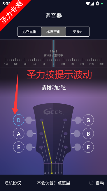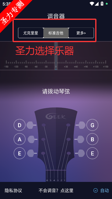 精准调音:通过麦克风捕捉音高,实时显示偏差并引导调整,支持自动/手动模式,适配吉他和尤克里里,确保音准准确。