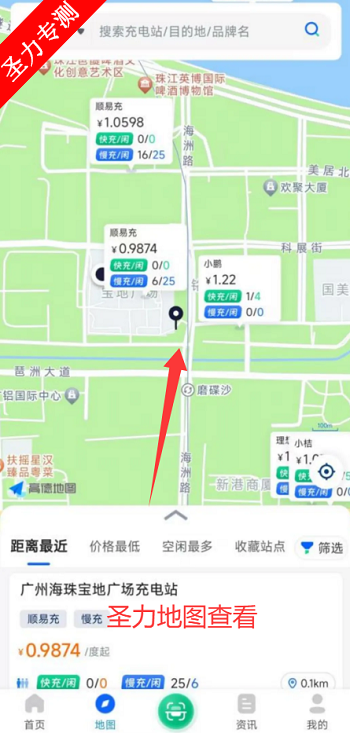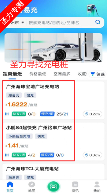 1、在主页面可以看到距离最近的充电站
