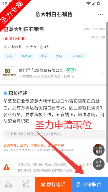 3、查看要求并点击申请职位