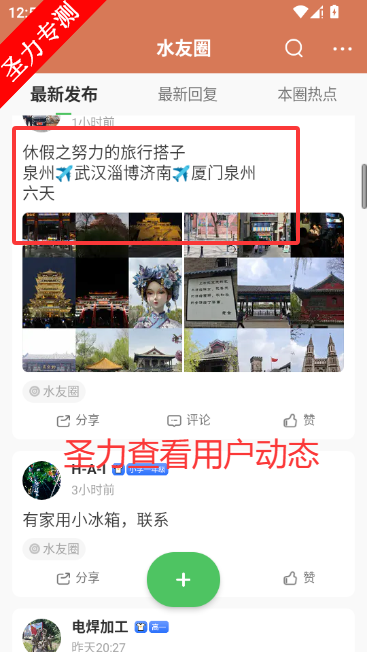 2、水友圈中可以看到其他用户发布的动态
