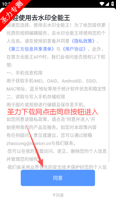 2、仔细阅读屏幕上的隐私政策,点击同意按钮进入。