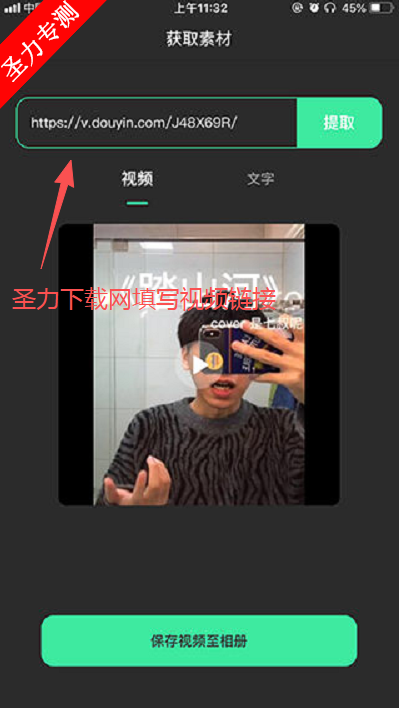 4、在编辑页面输入想要提取的视频链接,点击下方按钮即可。