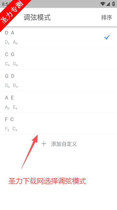 4、进入软件首页便可看到调音器功能,拉琴弦进行调音。