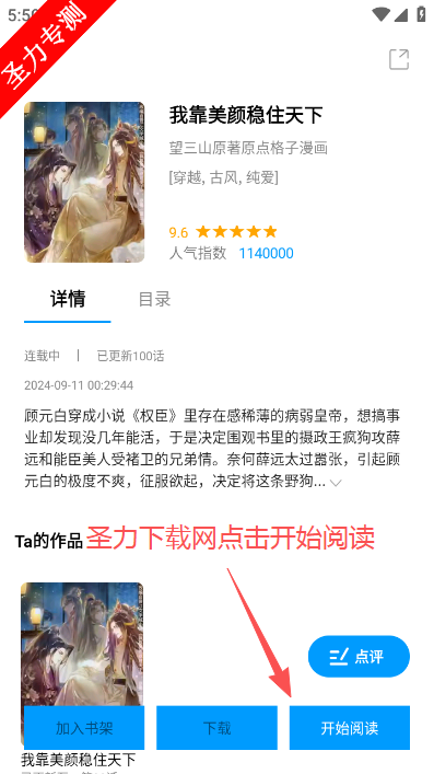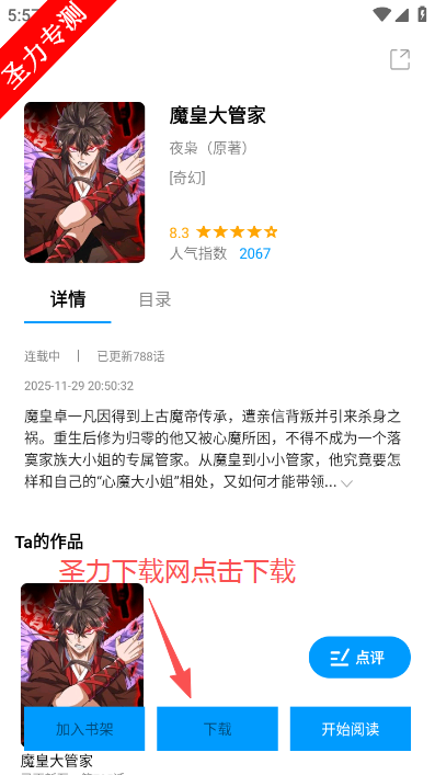 2、在漫画介绍页面点击下方下载图标。
