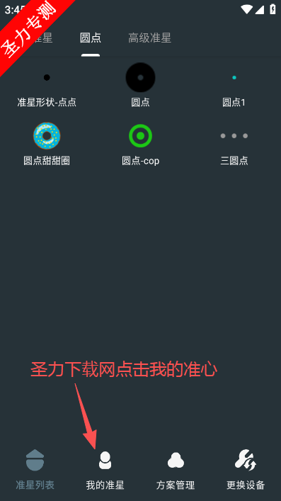 1、在软件首页点击下方我的准心字样切换页面。