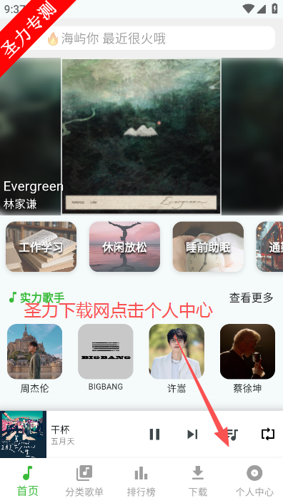2、进入软件首页便可看到各种热门歌曲推荐,点击上方搜索框。
