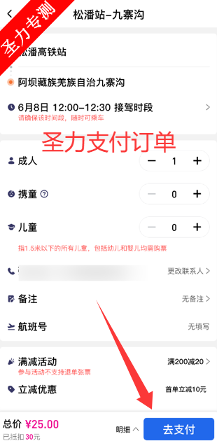 1、完成后支付行程订单