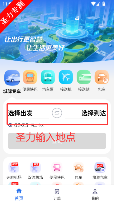 1、输入出发到达地点预约车辆