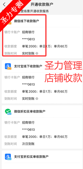 2、管理收款账户的绑定