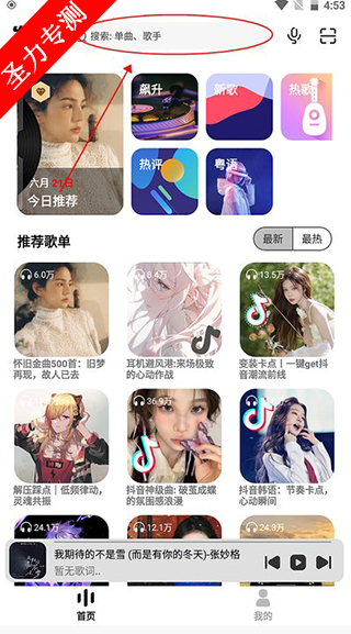 4、可以进行歌词或者关键字以及歌手等进行一键搜索。
