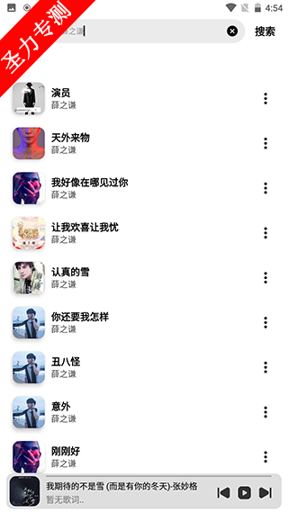 2、可通过歌曲/歌单/歌词/歌手进行搜索,如“薛之谦”