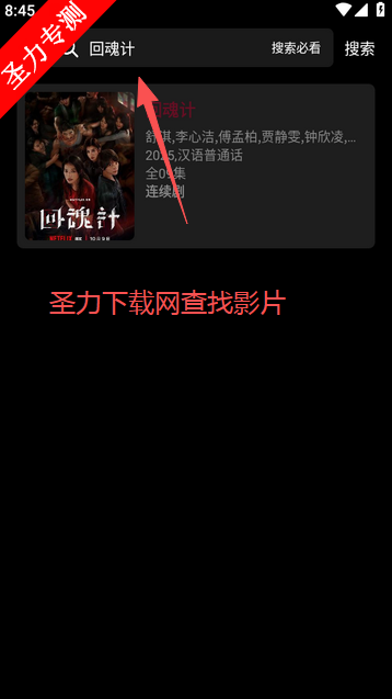 智能搜索:支持关键词模糊匹配、演员/导演定向搜索,3秒内定位目标资源。
