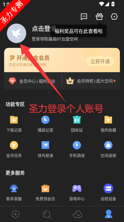 2、登录个人账号即可使用下载加速和云盘功能