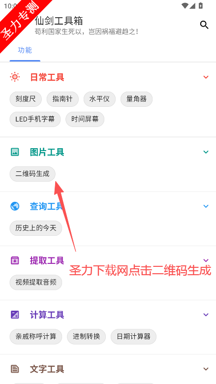 1、在软件首页可以找到二维码生成功能点击进入。