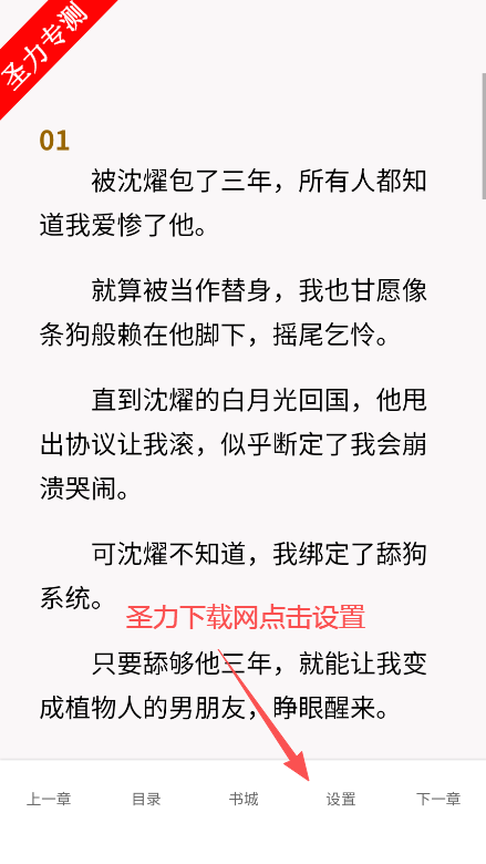 2、在阅读页面可以点击下方设置字样进入设置页面。