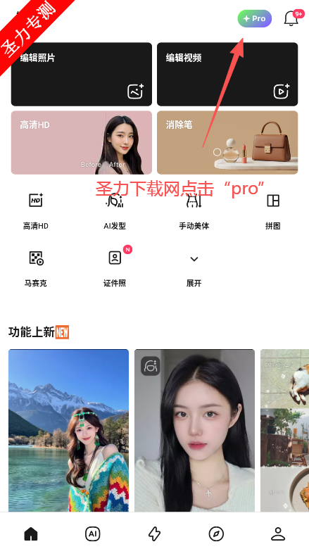 3、进入软件首页可以看到各种照片编辑功能,点击编辑照片功能进入。