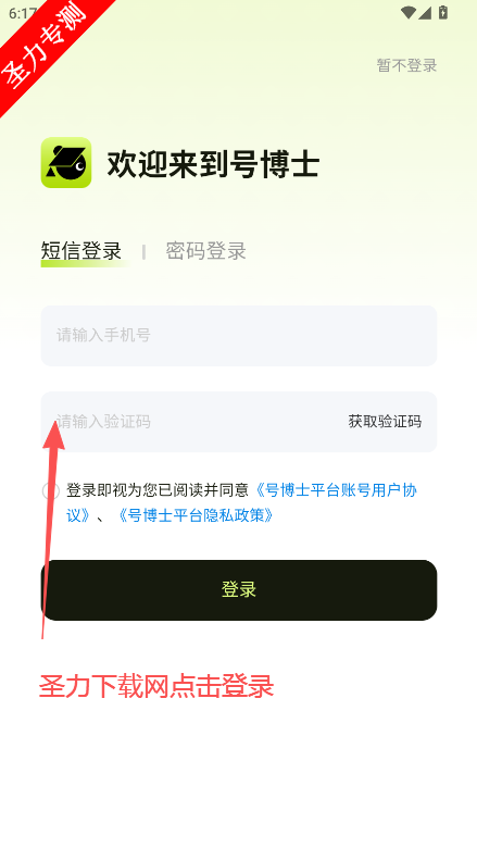 3、输入手机号获取验证码进行登录。