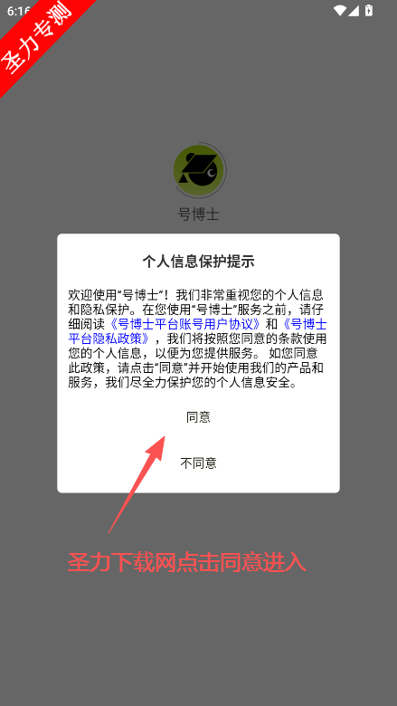 2、阅读屏幕上的隐私政策后,点击同意进入。