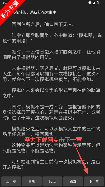 5、章节结束后点击右下角的下一章即可。