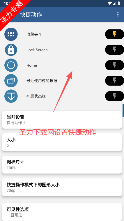 悬浮球辅助:在全屏应用中显示可拖动的悬浮按钮,点击展开快捷菜单。