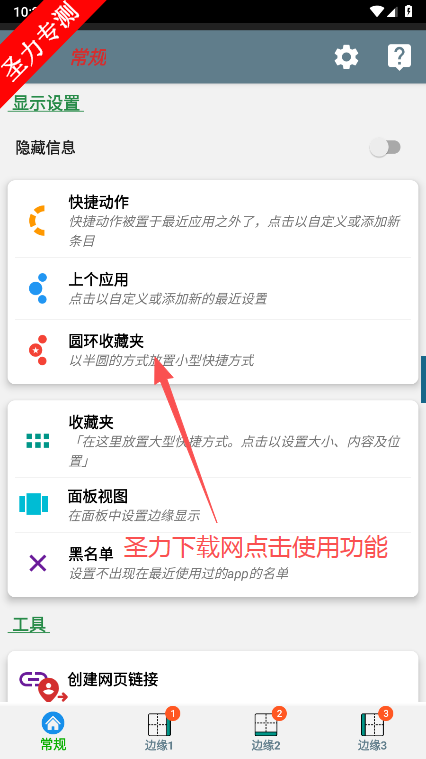 3、在软件首页可以看到各种辅助工具,点击下方边缘功能切换页面。