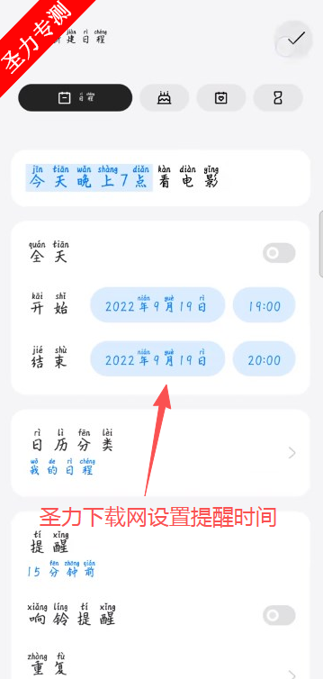 4、再编辑内容以及提醒方式即可。