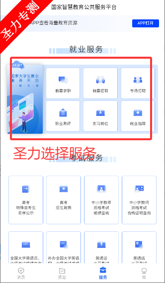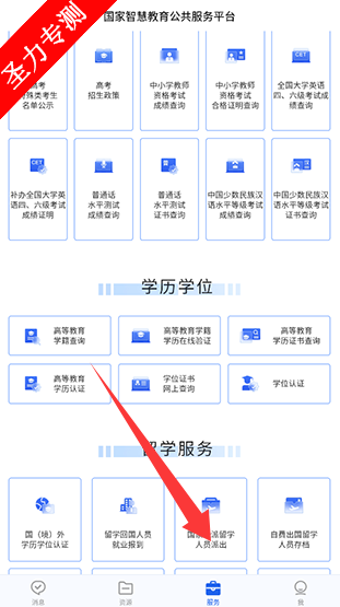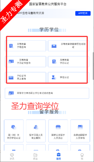 1、前往【服务】页面中选择对应的证书查询平台进行查询