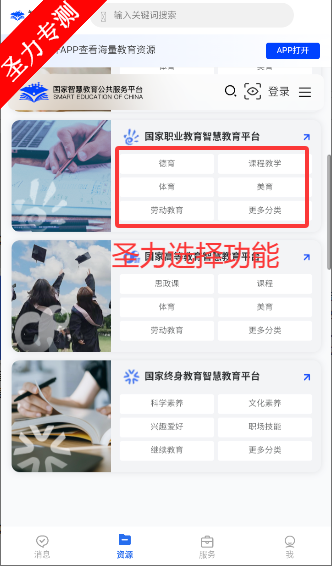 国家智慧教育公共服务平台APP整合国家中小学智慧教育平台、国家职业教育智慧教育平台等资源,覆盖德育、课程教学、课后服务等全场景,支持在线研修、家校共育,推动教育公平与优质资源共享,打造一站式数字化学习空间。