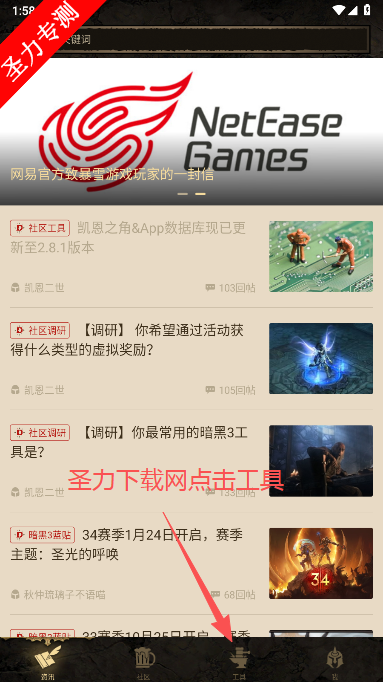 1、在软件中点击屏幕下方工具字样切换页面。