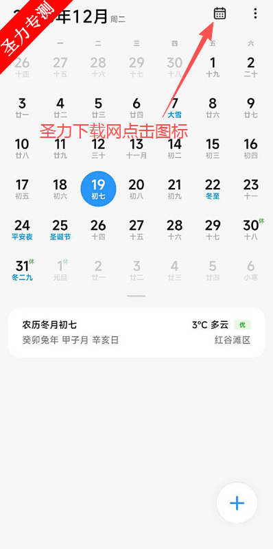 2、进入软件首页可以看到日历功能,点击右上角的图标。