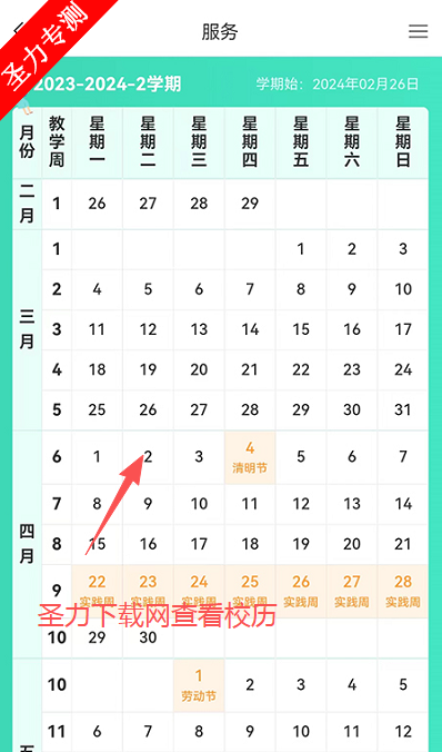 2、登录成功可以进入软件首页,看到各种校园服务功能,点击校历功能进入。