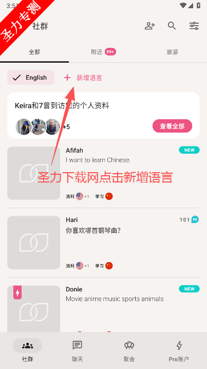 4、登录成功后便可进入软件首页,点击上方新增语言功能进入。