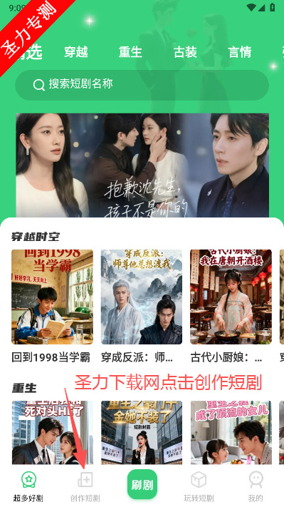 1、在软件首页点击屏幕下方的创作短剧字样切换页面。