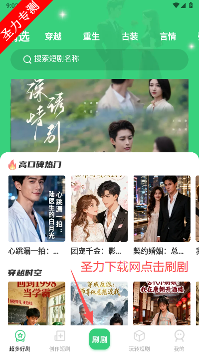 3、进入软件首页可以看到各种推荐短剧,点击屏幕下方中间的刷剧图标切换。