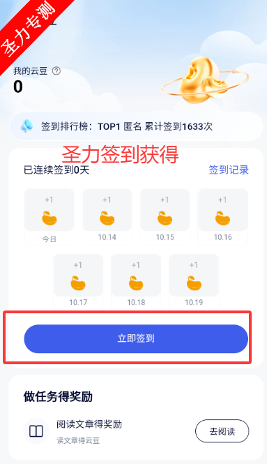 2、账户进行签到获取云豆
