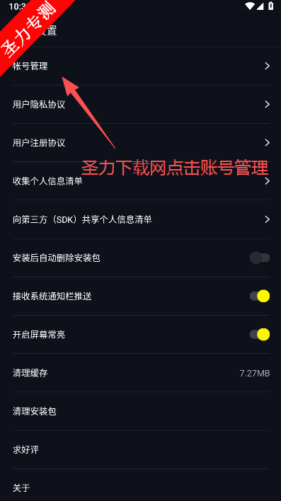 3、在设置页面点击账号管理功能进入。