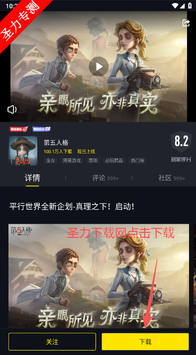5、在游戏介绍页面点击右下角下载按钮即可。