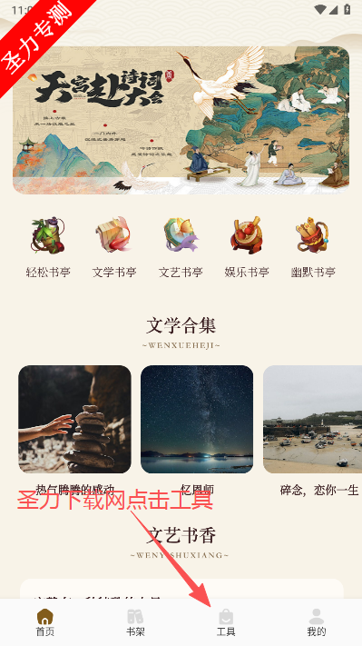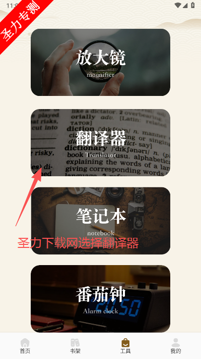 1、在软件首页点击屏幕下方工具字样切换页面。