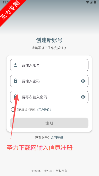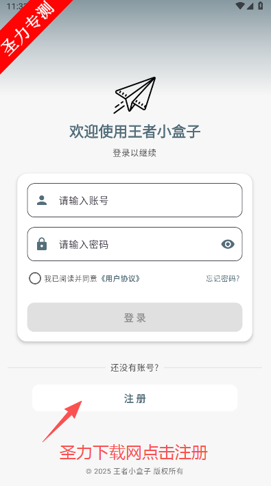 3、授权成功进入登录页面,点击下方注册字样切换注册页面。